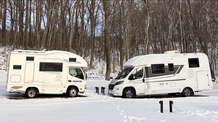 車内は FFストーブ完備でぽかぽか快適。さらに無料オプションで